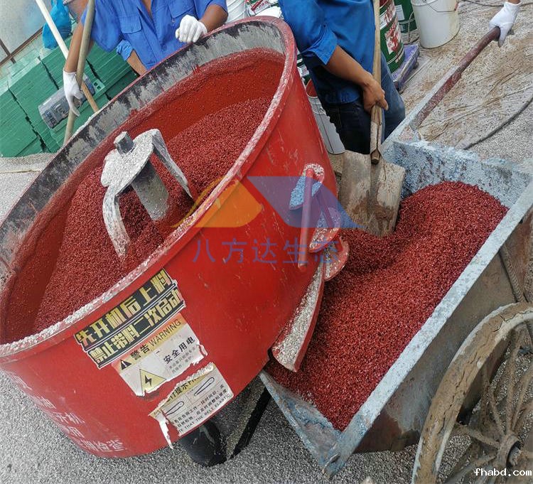 2、采用成品彩色透水沥青时,若要变换使用的透水沥青油颜色,残留在公共管道中的上一次使用的透水沥青油颜色就会污染下一次使用的采油颜色,这对产品外观造成较大的影响,同时由于成品彩色透水沥青价格高,这也是一种不小的浪费,为防止不同颜色的透水沥青相互污染,不同色彩的透水沥青采用不同的脱桶设备和输出管道,则设备投资和占用空间较大,如只采用一台脱桶设备,则在脱不同颜色的透水沥青时要对脱桶设备进行彻底的清洗,很耗时间和人力,物力,也很不方便,新工艺采用彩色透水沥青则完全不存在这个问题,具有很大的灵活性。