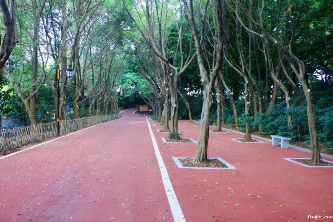 “以前这里是一片荒山野塘,每逢下雨就一片泥泞,周边的路上也总是积水,出行非常不方便。”家住誉山国际小区的居民梁伯说。在八方达历时3个月的打造下,终于可以投入使用,全程(除楼梯部份外)全程以透水混凝土铺装材料打造,具有高透水性、颜色艳丽、防滑耐磨、质感舒适,结合山中植被覆盖、绿树成荫、空气清新,已成为了附近居民周末游玩放松打卡的好去处。