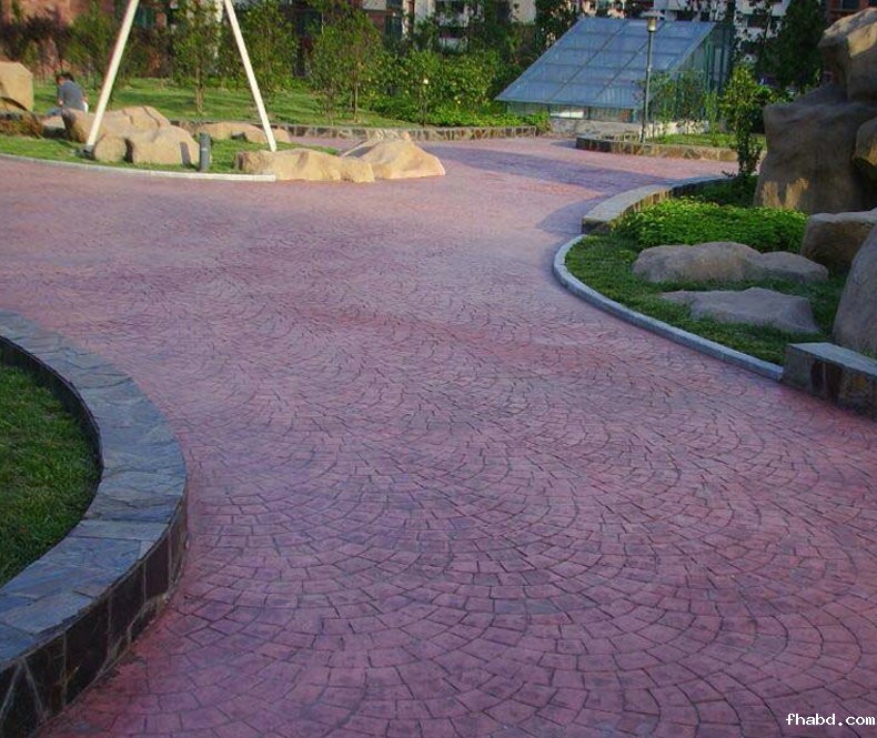 压模地坪具有较强的艺术性和特殊装饰要求的地面材料。同时还具有耐磨、防滑、抗冻、不易起尘、易清洁、高强度、耐冲击、且色彩和款式方面有广泛的选择性、成本低和绿色环保等特点,是目前园林、市政、停车场、公园小道、商业和文化设施领域的理想选择。