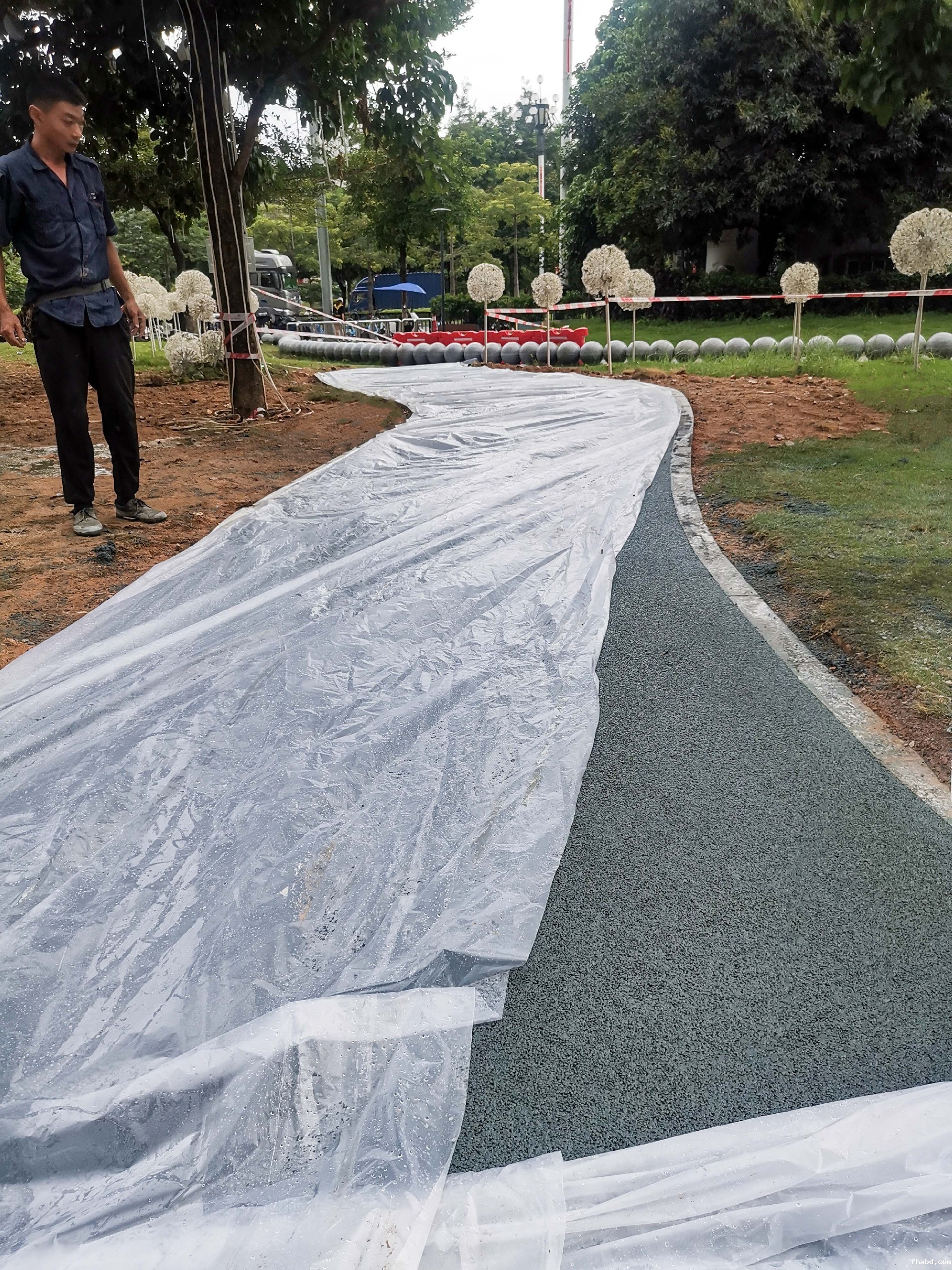 随着黄埔区广汕公路长坪高速口透水混凝土工程的额全面铺开,城市道路与轨道交通在广汕公路沿线的布局,加上先天的生态环境资源禀赋条件,这一带无疑是打造所谓东部山水新城的良好载体。透水混凝土路面是粗骨料通过覆盖水泥浆薄层胶结而成的多孔隙透水结构,由于内部孔隙较多,且且多是直径超过1mm的孔隙,使得透水混凝土路面具有良好的透水性,这也是建设海绵城市需要的要求。