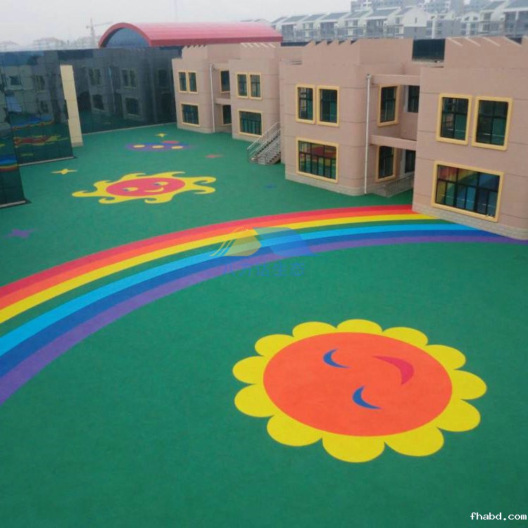 Epdm橡胶颗粒地坪选材为水性原料,无毒,绿色环保产品,质感Q软回弹性强,使用安全,图案设计感强,耐候性高,不宜老化,使用寿命长,抗紫外线强,色彩多样,性价比高价格适宜是现在幼儿园园区使用较多的地坪之一。